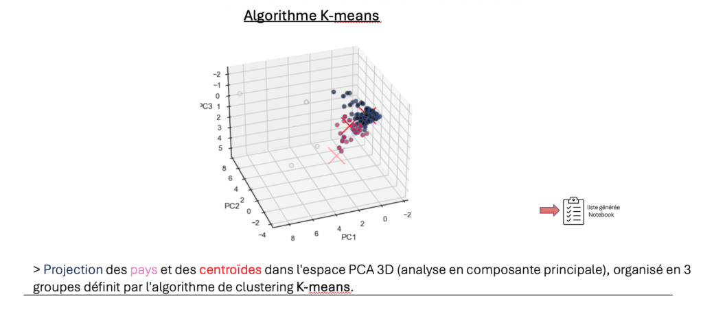 l’algorythme K-mean a été développé pour constitué des clusters par méthode de regroupement non supervisée (sans étiquette), qui partitionne un ensemble de données en k clusters en minimisant la somme des carrés des distances entre les points de données et les centroïdes des clusters auxquels ils sont attribués.