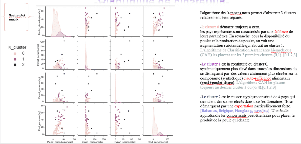 Il serait bienvenu d’approfondir les recherches avec les 4 pays du clusters 2 (atypiques).Ce sont les candidats déjà impliqués dans le commerce de poulet à grande échelles